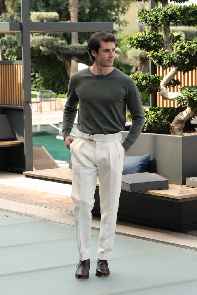 - 2 reverse pleats on the front